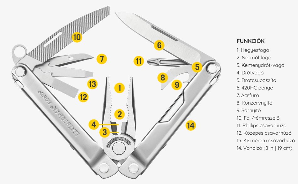 Leatherman Bond classic szerszám 14 funkcióval, natúr acél színű